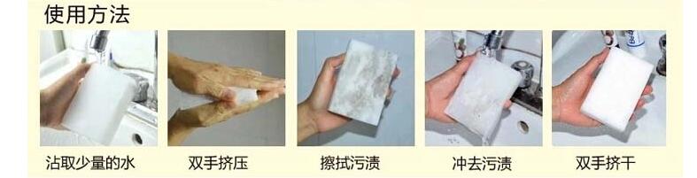 使用该产品只需用水,不需清洁剂,去污能力强,采用物理去污的机理,依靠海绵内的纳米毛细管开孔结构,在抹拭过程自动吸附物体表面的污渍,完全不依赖任何化学洗涤剂去帮助降解,具省时,省力,省钱,便利,环保,健康等特点。